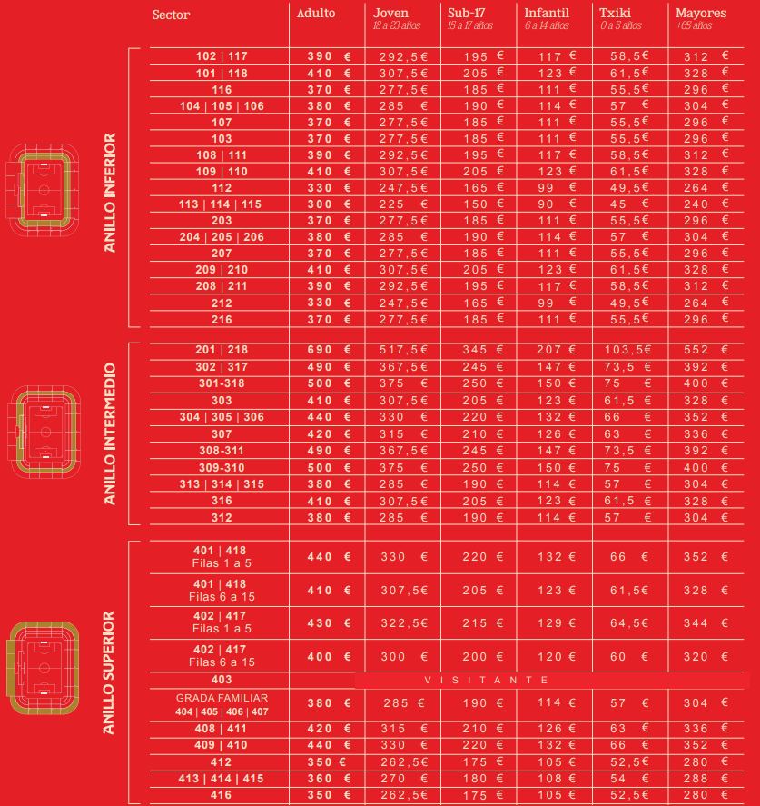 - Cambios de Localidad: No habrá opción de cambios de localidad esta temporada debido a trabajos de ampliación del aforo del estadio.